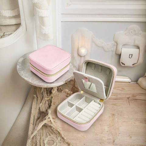 Xách tay hai lớp gương PU vật liệu trang sức Organizer cho nhẫn bông tai dây chuyền vòng tay